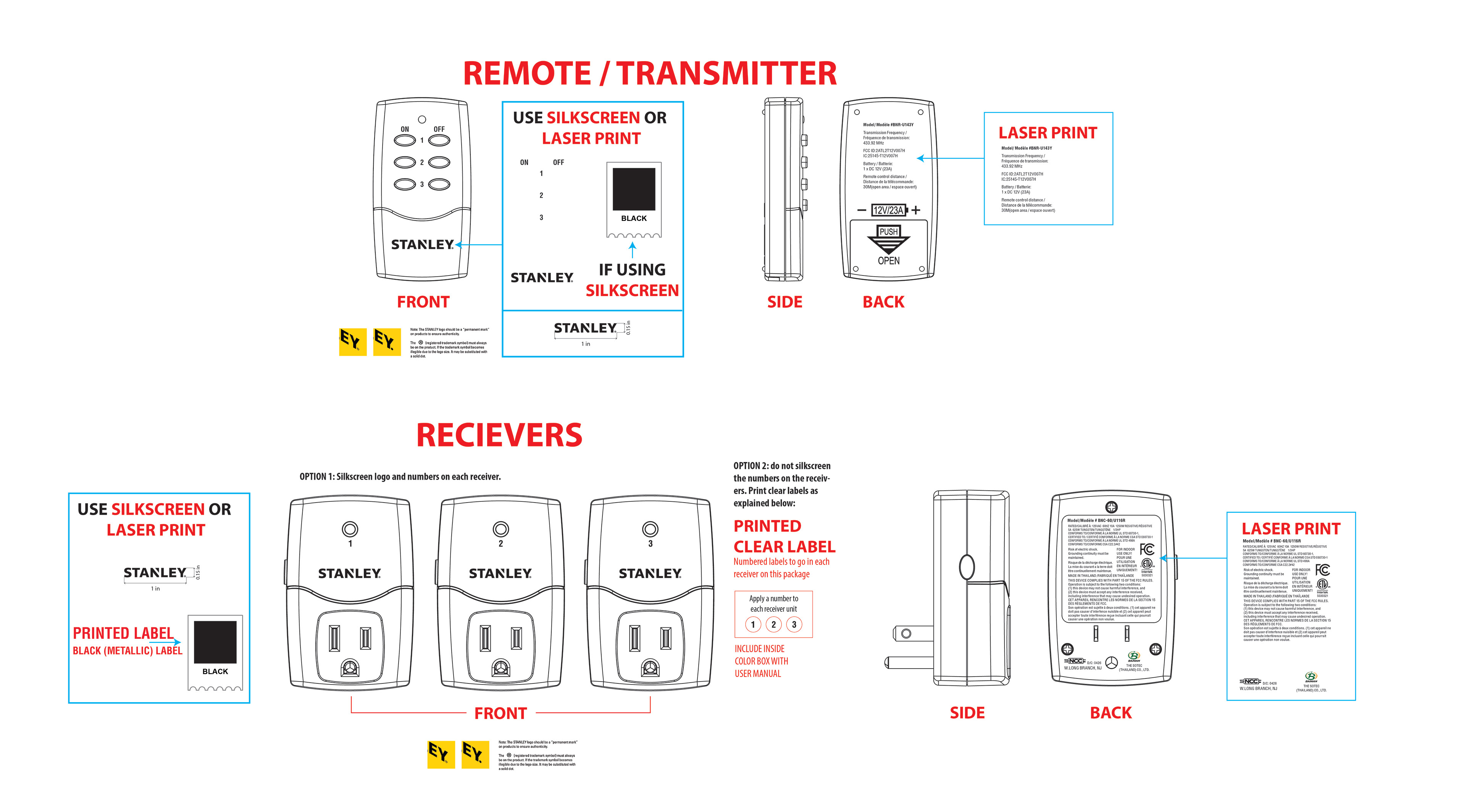 Below is a showcase of different designs for STANLEY and Westinghouse electronic devices. Both brands have their Everyday and Holiday guidelines, with STANLEY using their signature yellow and black across all Everyday designs and gold and/or greens and reds in their Holiday packaging. Westinghouse uses various colors, with their Westinghouse blues used in Everyday, and their reds and greens in their Holiday designs. Both brands have different style guides; STANLEY's 2022-2025 artwork had architectural lines across all packages to show that their products are more inclined for construction and shop work, while Westinghouse has their guides geared towards household items and everyday use.